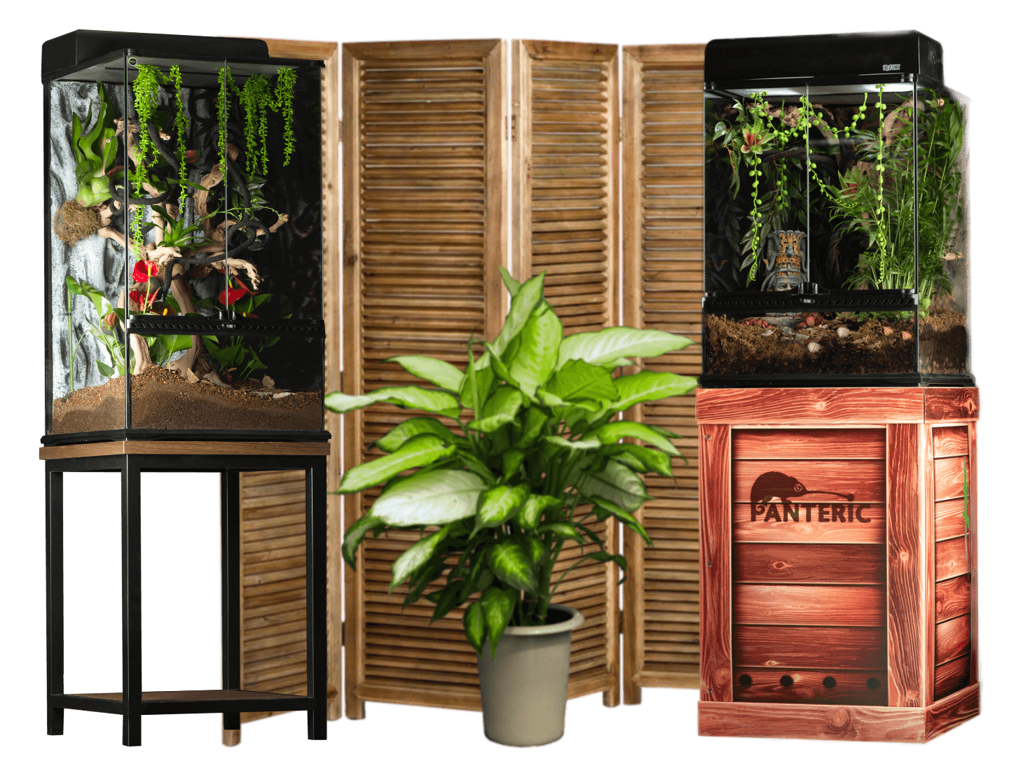 Фон в террариуме — это не просто украшение, а важный элемент, создающий объем и дополнительные точки передвижения для питомцев. Тумбы выдерживают вес даже самых крупных террариумов, скрывают провода и оборудование. В Panteric есть всё для стильного и функционального обустройства террариума!