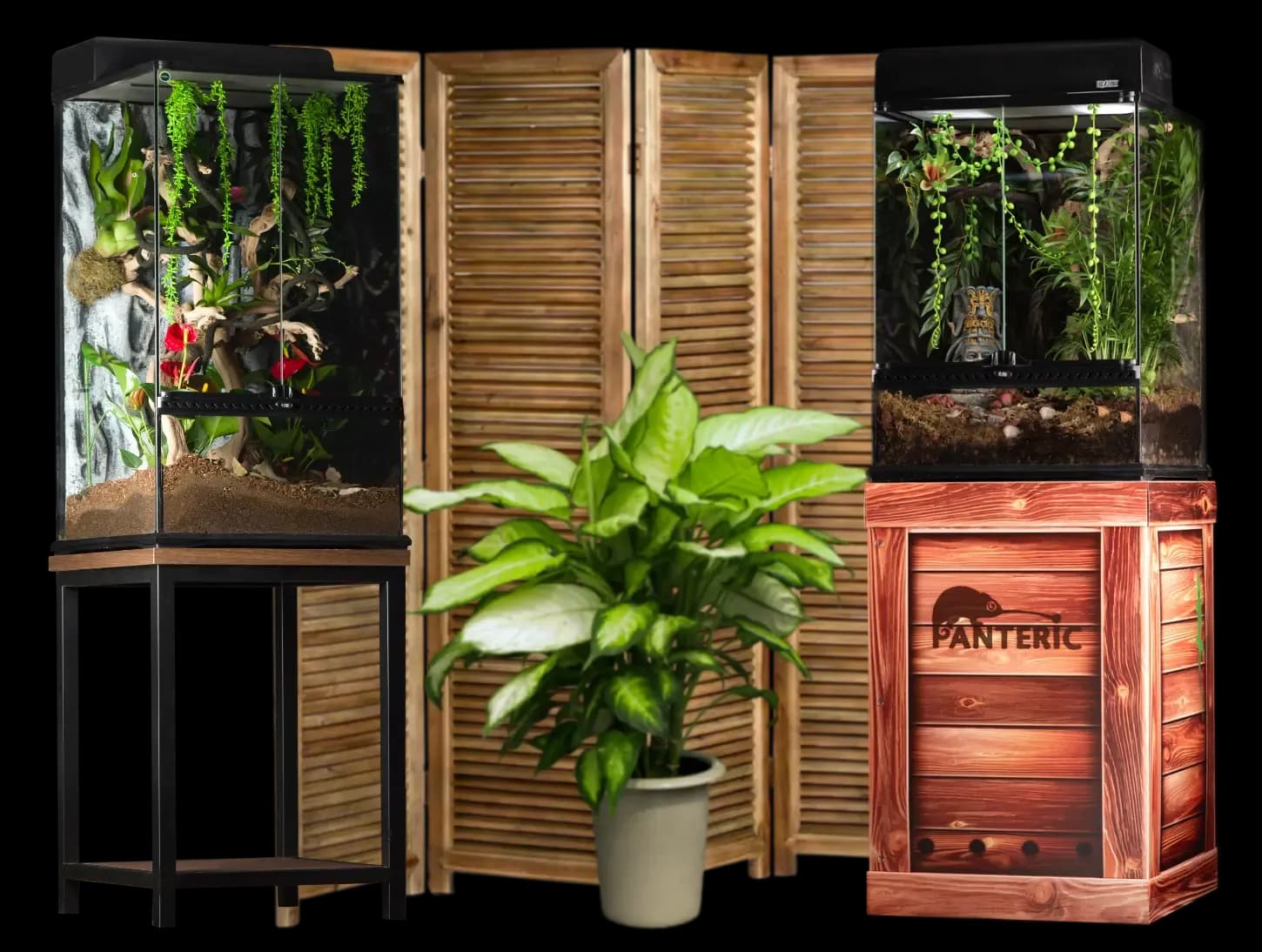 Фон в террариуме — это не просто украшение, а важный элемент, создающий объем и дополнительные точки передвижения для питомцев. Тумбы выдерживают вес даже самых крупных террариумов, скрывают провода и оборудование. В Panteric есть всё для стильного и функционального обустройства террариума!